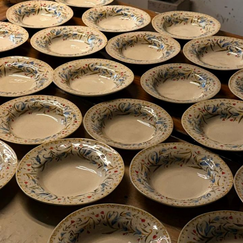 Speaklow came to us with a vision as layered as the space itself—a casual dining speakeasy with a distinct personality. Over six months of close collaboration, we built their entire tableware collection from scratch: handpainted pasta plates, platters, bowls, and cocktail glasses that capture the venue's soul, plus custom decals which reflect their brand identity .